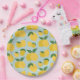 Lemon Pattern Retro Fruit Yellow On Green Paper Plate