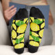 Lemons and leaves. Seamless pattern. Custom background colour. Custom top stripe colour. Custom text on each sock.