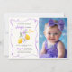 Lemon Purple Bow First Birthday Party Photo Invitation