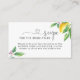 Watercolor lemon Recipe for the bride to be Enclosure Card. Floral Blush recipe card insert.