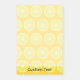 Round slice of lemon. Seamless pattern. Custom background colour. Custom text.