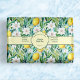 A wrap for handmade soap featuring lemons, white flowers, and green leaves.