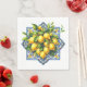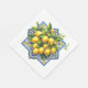 Party paper napkins are shown in the white luncheon size with an art print of a mediterranean lemon tile.