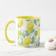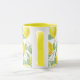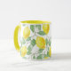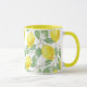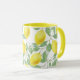 A fruiting lemon tree. Lemon tree pattern. Lemon tree with green leaves, yellow lemons and white flowers.