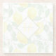 Lemon Tree Pattern Name and Watercolor Monogram Glass Coaster