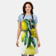 This colourful apron features beautiful yellow watercolor lemons on a lemon tree branch with blue green leaves. The optional text reads: Squeeze the Day. Click "Personalise this Template" to easily change or remove the text.