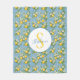 Lemon Watercolor Blue Tile Pattern Personalized Fleece Blanket