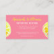 Summer styled business card featuring bright yellow watercolor lemons and pink background.