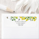This is a bright and summery lemon themed, wedding return address label. The design shows a branch of a lemon tree, its white flowers, green leaves and sweet fluttering butterflies.