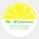 A sticker featuring an illustration of a lemon wedge on top half portion. Personalise the green text on bottom half with your name and address. Look for matching items in the "food" category of Jill's Paperie.