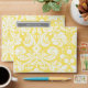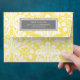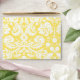 Elegant bright canary yellow and white A7 greeting card envelope with stylish and vintage floral damask pattern. Customise it with your return address. Available in matching cards and many other wedding products.