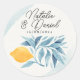 This elegant and trendy lemon and blue leaves wedding invitation with watercolor background is perfect for a modern and stylish wedding. The modern vintage design features beautiful romantic Sicily inspired watercolor lemon on a blue leaves branch.