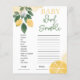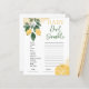 Featuring vibrant lemon illustrations and a fresh, citrus-inspired design, our game cards bring a burst of colour and fun to your event. The cheerful yellow accents and playful fonts make this game a delightful addition to any baby shower decor.