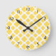 Lemon Yellow and White Quatrefoil Pattern Round Clock