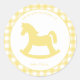 Lemon yellow and white gingham check personalised "from the nursery of" envelope seal with cute rocking horse silhouette.