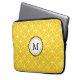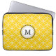 A laptop sleeve with a diamond geometric design in lemon yellow and white to customise with your initial.