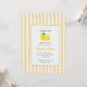 Elegant lemon graduation invitation with soft yellow stripes and minimal citrus illustration. A clean and modern design perfect for spring and summer graduation celebrations, aligning with trending pastel and fruit-inspired party themes. Fully customizable for a fresh and stylish event. Original artwork by Caroline Bonne Muller.