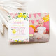 This adorable invitation features colourful watercolor lemons, pink flowers and faux gold foil confetti.