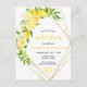 This fun and whimsical bridal shower postcard features watercolor citrus lemons and foliage on a gold geometric frame. The text combines handwritten script and serif fonts for a stylish and modern look. This is perfect for a summer rustic bridal shower.