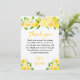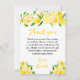This beautiful and elegant thank you card features watercolor citrus lemons and foliage. The text combines handwritten script and serif fonts for a stylish and modern look. This is perfect for a spring or summer rustic baby shower.