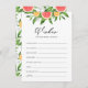 Ask friends and family to leave wishes for the bride and groom. It features watercolor illustrations of grapefruits, oranges and foliage garland with a matching lemon pattern. Perfect for summer weddings and bridal showers.