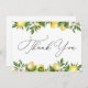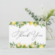 Thank You card features a border of watercolor lemons and greenery. Personalise with your information or click "Click to customise further" to edit font styles, size and colours. Can also be personalised on the back with your own typed message or delete this space to handwrite your own thank you.