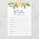 Ask friends and family to leave wishes for the bride and groom. It features watercolor illustrations of lemons, oranges and foliage garland with a matching lemon pattern. Perfect for summer weddings and bridal showers.