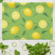 Vector seamless background with yellow lemons and leaves on green. © and ® Bigstock® - All Rights Reserved.