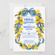 Lemons blue bow ribbon coquette bridal shower invitation template instant download, citrus lemons blue and yellow bridal shower invitation editable template; summer bridal shower invitations