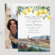 This elegant wedding save the date invitation, featuring watercolor lemons and a Florence, Italy scene can be personalized with your information in chic typography and all your special photo on the reverse. Designed by Thisisnotme©