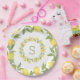 Lemons Greenery Monogram Elegant Paper Plate