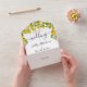 All in one wedding invitation lemons, blossom, greenery and script monogram initials. The invitation includes a perforated RSVP card that’s can be individually addressed or left blank for you to handwrite your guest's address details. Designed by Thisisnotme©