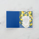 Boho-chic yellow lemons with varying shades of greenery are draped seemingly effortlessly in this "Thank You" script text Bridal Shower design. Elegant and classy for your bridal shower occasion. Features a faux gold geometric shape overlaid on a mediterranean Italian blue and white background, Composite design by Holiday Hearts Designs.