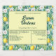 This elegant waterproof editable bath salts pouch label measures 4 inches by 3.5 inches (102 mm by 89 mm). It has a border featuring lemons and white flowers surrounding a yellow panel with green text with space for your company name, product name, ingredients, product description, and business contact information. This label is designed as a label for bath salt pouches, but it could also be used a a label for large cosmetic jars or other larger cosmetic containers.
