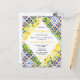 This fun and whimsical baby shower postcard features watercolor citrus lemons and foliage on a Mediterranean tile background. The text combines handwritten script and serif fonts for a stylish and modern look. This is perfect for a summer rustic baby shower.