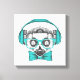 This design features a lemur dressed in teal eyeglasses and a bow tie listening to music with a headset.