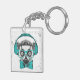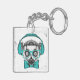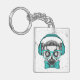 This design features a lemur dressed in teal eyeglasses and a bow tie listening to music with a headset.