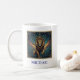 This elegant Leo mug features a celestial illustration inspired by classical astronomy and timeless zodiac symbolism. Deep midnight blues, swirling cosmic skies, and warm golden accents surround the Leo lion, symbolizing courage, confidence, and the radiant spirit of this fire sign.