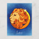Colourful illustration features blue background with a golden lion - the symbol of astrological zodiac sign Leo (Jul. 23-Aug. 21).