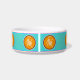 This is a heavy, durable bowl decorated with Tibbies of many colors, the perfect size for hungry/thirsty Tibs. The design is interesting and printing clear.