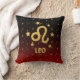 Custom throw pillow for "Leo" featuring golden zodiac symbol, gold stars, and red and black gradient background.