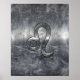A Leo zodiac sign in a grunge distressed silver metallic steel style background. A modern urban racy design for a great custom birthday gift idea.