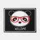 Home Panda Home. Panda Bear Door Mat Home Decor. Cute Panda Bear front door mat. Leon the panda bear with Red Glasses on a black and black background that you can customize. Fun Panda Bear home decor. Customize text, color, style of your cute, everybody loves Leon. Panda Bear Mat to match your home decor.