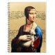 A stunningly beautiful women, holding a pet ermine - a reference to the Sforza family, a member of which the lady was the mistress of. Against a background of Leonardo's distinctive backwards handwriting.