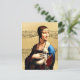 A stunningly beautiful women, holding a pet ermine - a reference to the Sforza family, a member of which the lady was the mistress of. Against a background of Leonardo's distinctive backwards handwriting.