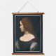 Leonardo Da Vinci's "Portrait of a young lady" painting from the 1400s printed on a wood-framed wall-hanging tapestry. Old famous artists and masters home decor. CCO license, public domain art.