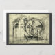 Treadmill Powered Crossbow (c. 1480) by artist Leonardo da Vinci (1452-1519). This war machine drawing is a vintage Renaissance Era fine art military painting. A large treadmill with a man walking on it powering several cross bows. A great design for science geeks.