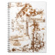 A notepad with a compilation of Leonardo DaVinci sketches in a rusty brown print on the cover. Perfect for a steampunk or retro look, artist or engineer.