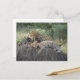Leopard and cub resting on yellow dry grass postcard.