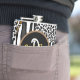 Tan, black and white leopard, zebra and giraffe print mixed pattern personalised flask.